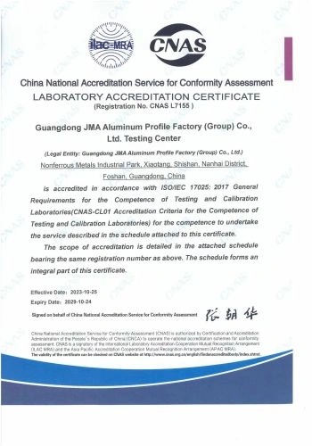 Guangdong JMA Building Technology Co., Ltd. (JMA Doors & Windows System), a subsidiary of JMA Aluminum Group, was established in 2002 as JMA Doors and Windows Processing Factory. Our magnificent new production base is nestled in Songxia Industrial Park, Guangdong Foshan National High-Tech Industrial Development Zone, boasting a total construction area of 200,000 square meters and an astonishing annual capacity of over 1 million square meters of windows. As a state-certified high-tech enterprise, we are also home to a national window testing center. JMA Doors & Windows System has meticulously crafted six major systems and over 100 series of door and window products that exude superior performance, high cost-effectiveness, and complete functionality.